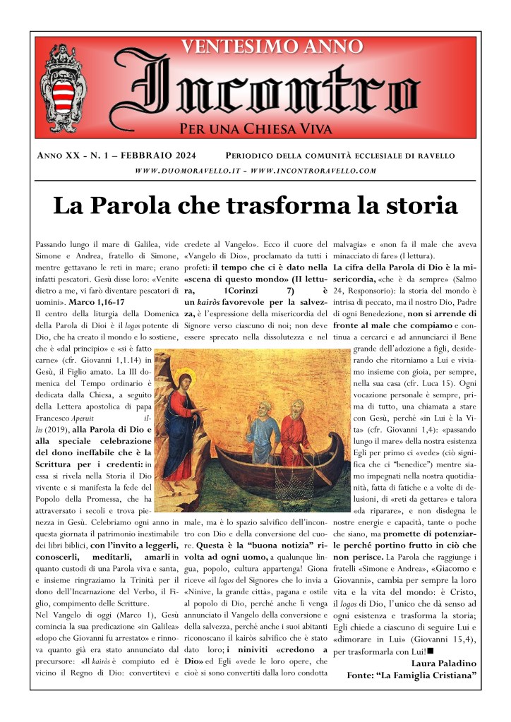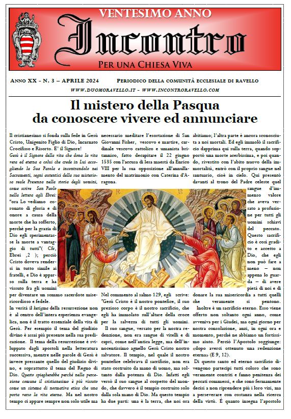 È disponibile (scaricabile in basso) il numero di giugno 2024 di “Incontro per una Chiesa Viva”, periodico della Comunità ecclesiale di Ravello.
